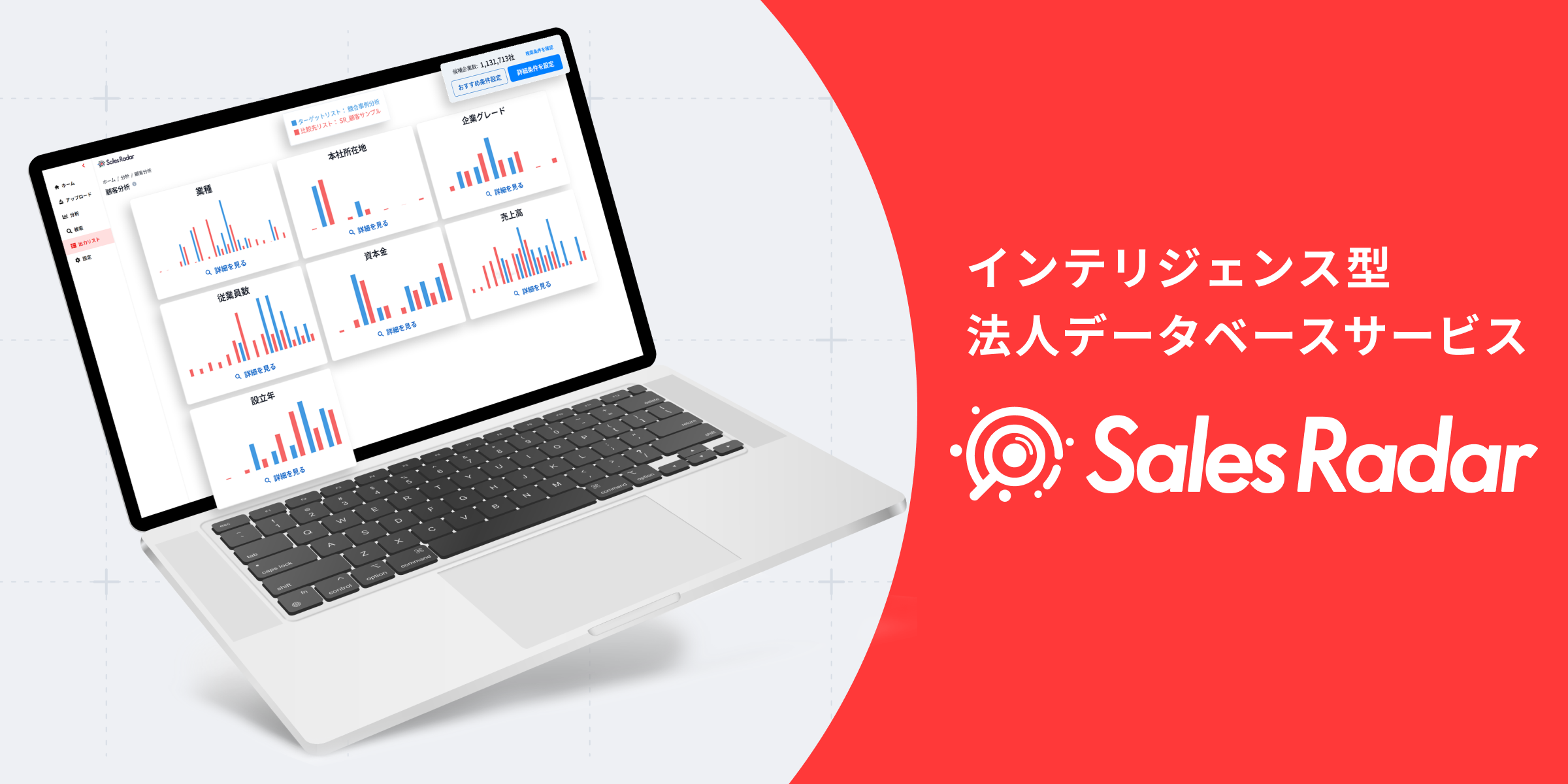 SalesRadar(セールスレーダー)は、株式会社FUTUREWOODSが提供する、営業戦略を日々の業務に組み込むインテリジェンス型法人データベースサービスです。